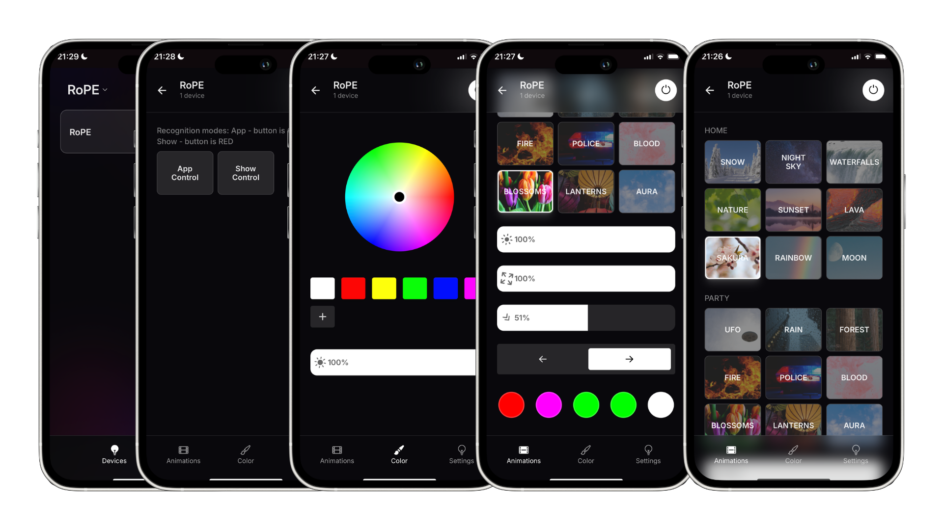 Objevte sofistikované funkce animace světla a barev, které můžete jednoduše řídit prostřednictvím mobilní aplikace, jež podporuje vaši kreativitu.